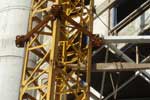 Anclajes y arriostramientos de grúa torre de construcción a niveles de piso 7º y 12º durante la construcción del complejo Torres del Golf en Mar del Plata, subcontratado por COARCO S.A. |