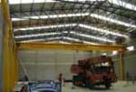Puente grúa de 5000 kg. por 21,00 mts. de luz entre carrileras, desarrollo construcción y montaje incluidas columnas y vigas carrileras independientes del edificio (para eliminar vibraciones y problemas con lindantes) para MDQ GRANITOS Y MARMOLES S.A.